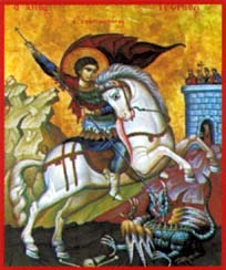 aaaLe culte de Saint Georges a connu une immense faveur dans tout le monde chrétien, tant en Orient quen Occident. Il a été choisi pour protecteur de pays comme la Géorgie(3) et la Grande-Bretagne, des milliers d'églises lui ont été consacrées et toute âme chrétienne voit en lui l'incamation des vertus de vaillance, de patience dans les afflictions et de confiance en l'assistance de la Grâce que le Christ, Maître du combat, a recommandées à tous les soldats de la piété.
